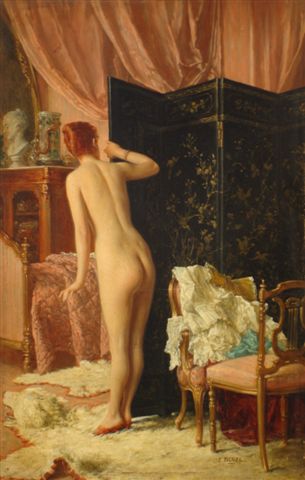 Benjamin Eugène FICHEL (1826-1895)Nu au paravent.Huile sur panneau, signée en...