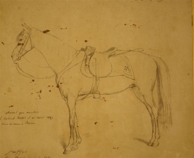 Annoté à gauche "Cheval que montait le Colonel BONNET le 30 avril 1849 sous les murs de Rome".
