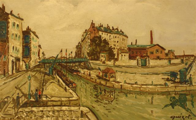 Alphonse QUIZET (1885 - 1955)Bord du canal Saint-Martin.  Peinture...