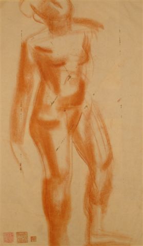 Alexandre IACOVLEFFFemme nue debout. Sanguine, signée de cachets monogrammes chinois...