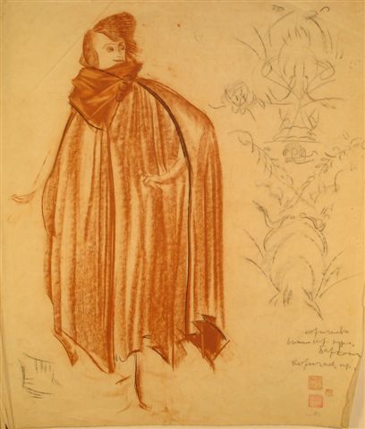 Alexandre IACOVLEFFFemme debout au large manteau. Sanguine et crayon noir,...