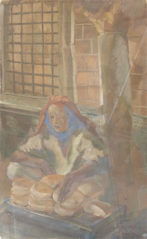 Alexandre IACOVLEFFFemme vendeuse de pain.Tempera sur toile contrecollée sur carton,...