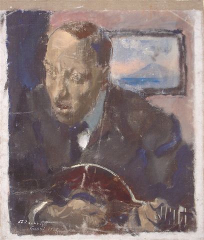 Au dos " Ce portrait pourrait être celui du pianiste A. Borovski, qui fut l'ami commun de V. Choukaieff et de A. Iacovleff".