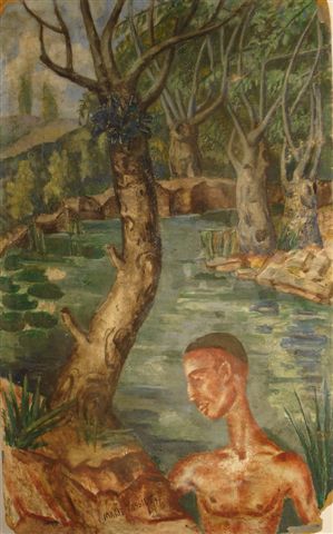 VASSILIEFFJeune homme se baignant dans une rivière.Huile sur carton, signée...