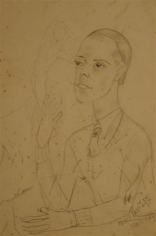 Crayon, signé, localisé Paris et daté 1945 en bas à droite. (taches)