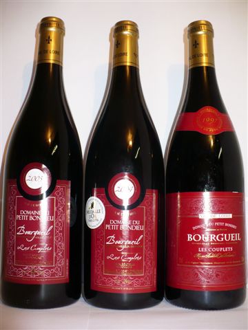 Domaine du PETIT BONDIEU, Bourgueil, 3 bouteilles : 2005, 2004, 1997.