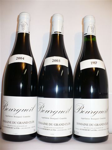 Maison AUDEBERT et Fils, Bourgueil, Domaine du Grand Clos, 3 bouteilles : 2004, 2003, 1987.