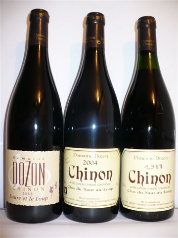 Domaine DOZON, Chinon, 3 bouteilles : Cuvée Laure et le Loup 2005, Clos du Saut au Loup Cuvée Laure 2004, Clos du Saut au Loup 1987.