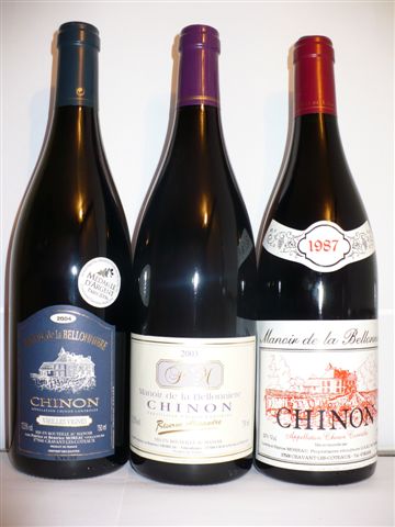 Manoir de la BELLONIÈRE, Chinon, 3 bouteilles : Cuvée Vieilles Vignes 2004, Cuvée Alexandre 2003, 1987.