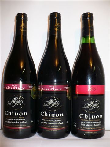Domaine Jean-Maurice RAFFAULT, Chinon, 3 bouteilles : Clos Isoré 2005, Clos Isoré 2005, 1977.