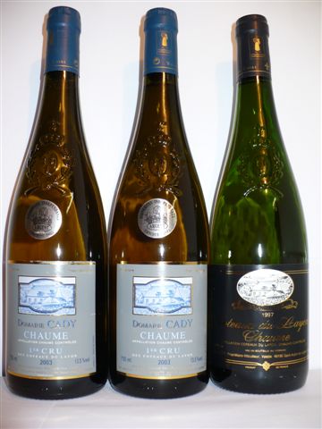 Domaine de CADY, Coteaux du Layon Chaume, 3 bouteilles : Chaume 1er cru 2003, Chaume 1er cru 2003, Coteaux du Layon Chaume 1997.