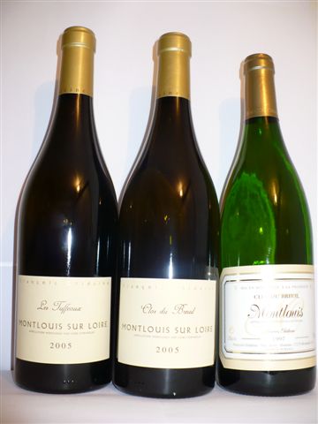 CHIDAINE, Montlouis sur Loire, 3 bouteilles : Les Tuffeaux 2005, Clos du Breuil 2005, Clos de Breuil 1997.