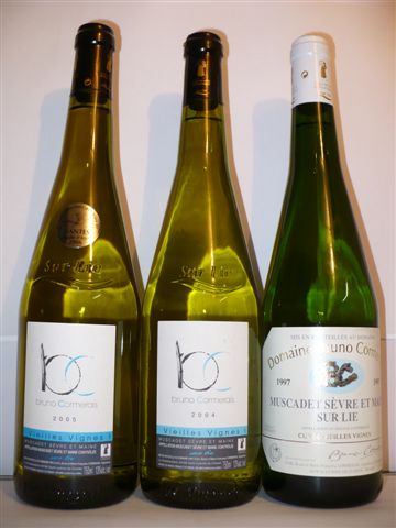 Domaine Bruno CORMERAIS, Muscadet Sèvre et Maine sur Lie, 3 bouteilles : Vieilles Vignes 2005, Vieilles Vignes 2004, Vieilles Vignes 1997.