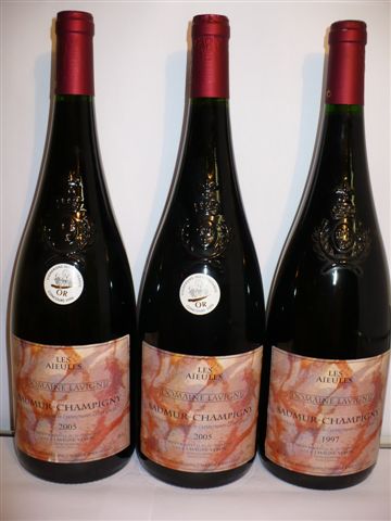Domaine LAVIGNE, Saumur Champigny, 3 bouteilles : Magnum Les Aieules 2005, Magnum Les Aieules 2005, Magnum Les Aieules 1997.