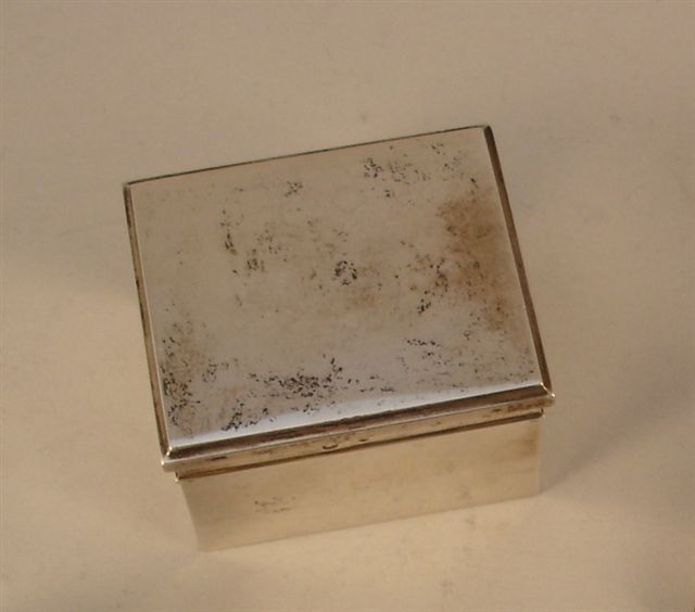 BOÎTE À TABAC de forme carrée en argent. Porte la mention "S.T. DUPONT. PARIS". Poinçon Minerve. XXème siècle. Poids : 120 g.