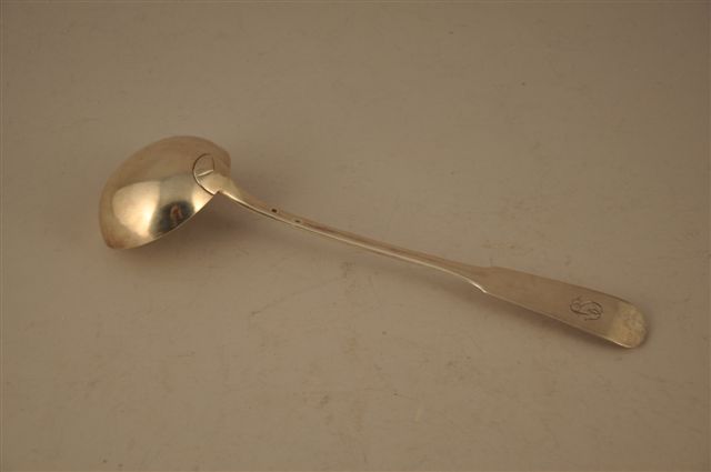 LOUCHE en argent, modèle uniplat, monogrammée LS, poinçon Minerve, orfèvre...