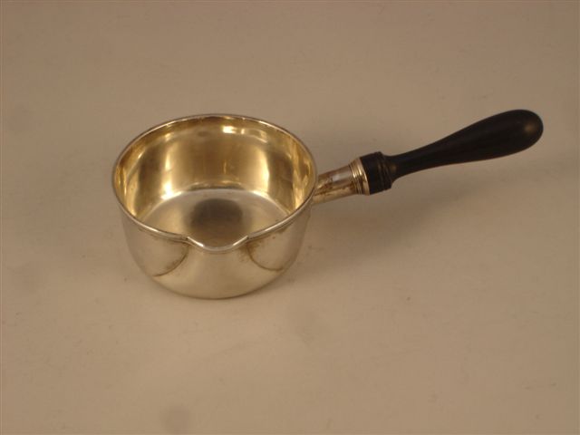 CASSEROLE À CHOCOLAT en argent uni à moulures de filets. Manche en bois noirci. Paris, 1781-1789. Poinçon de maître-orfèvre illisible.
