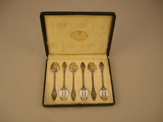SIX FOURCHETTES À HUÎTRES en argent à décor de fleurs...