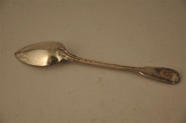 CUILLÈRE À RAGOÛT en argent. Modèle filets. Monogramme "DP". Poinçon...