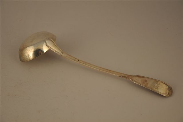 LOUCHE en argent, modèle à filets, monogrammée. Paris, poinçon Vieillard (1819-1838). Orfèvre : BOURDON.