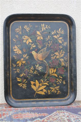 PLATEAU en tôle peinte à décor d'oiseaux. Style Napoléon III.