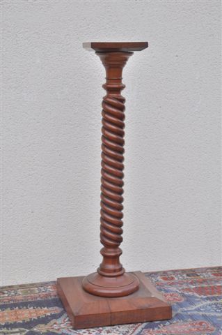 SELLETTE en merisier la base de plan carré, le fût torsadé. Haut. 112 cm, base 40 cm de côté.