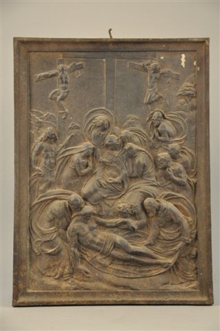 DESCENTE DE CROIX, bas relief en fonte de fer. Haut....