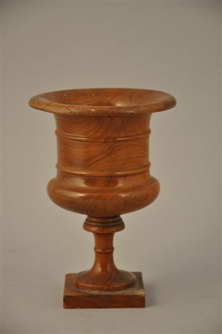 VASE de forme Médicis sur une base carré en bois. Haut. 16, Diam. au col 11 cm. (accident restauré).