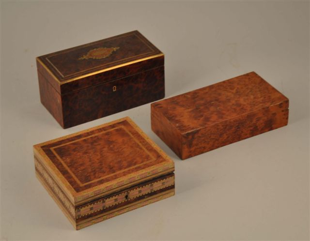Joint : 2 COFFRETS en bois de placage de thuya, XXème.