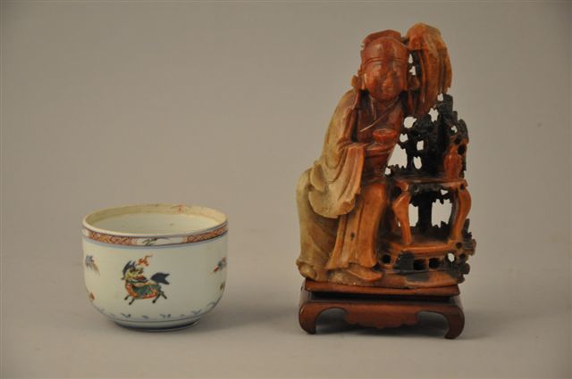 BOL en porcelaine de la Chine à décor d'animaux fantastiques. Diam. 10 cm.