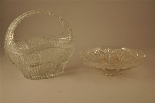 LOT comprenant PANIER JARDINIÈRE et COUPE en cristal soufflé à la bouche et taillé à la main, à décor de pointes de diamants. COUPE évasée. Haut. 26, Long. 29, Larg. 23 cm.
