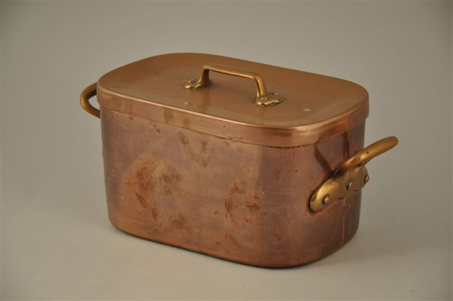 DAUBIÈRE en cuivre. XIXème siècle. Haut. totale : 16,5, Long. 37 cm.