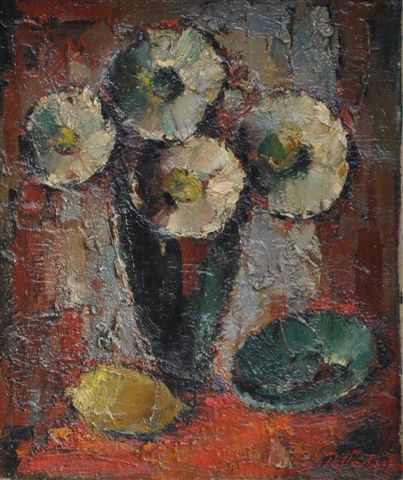 Boris PASTOUKHOFFNature morte au bouquet de fleurs et au citron.Huile...