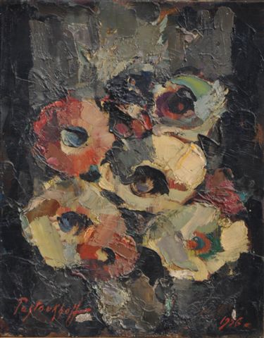 Boris PASTOUKHOFFAnémones.Huile sur toile signée en bas à gauche et...