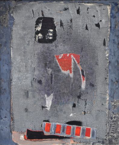 Technique mixte et collage sur carton, signée et datée 62 en bas à droite.