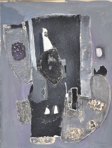 Gouache et collage sur carton, signée et datée 62 en bas à droite.