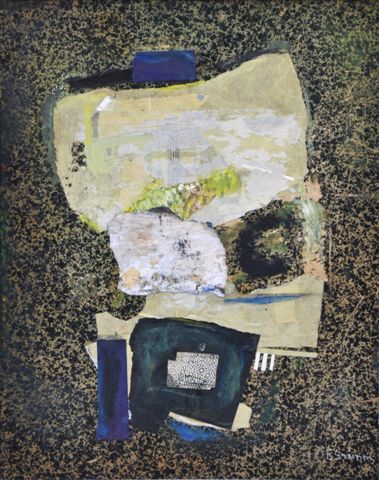 Technique mixte et collage sur carton à dessin, signée en bas à droite.