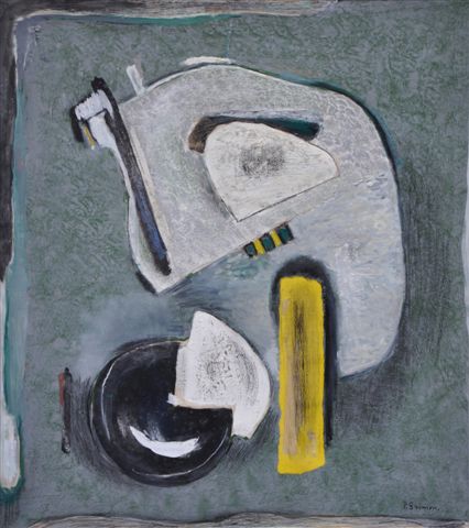 Technique mixte et collage sur carton, signée en bas à droite.