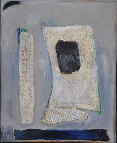 Huile sur carton et collage signée en bas à droite, datée au dos 06.V.75.