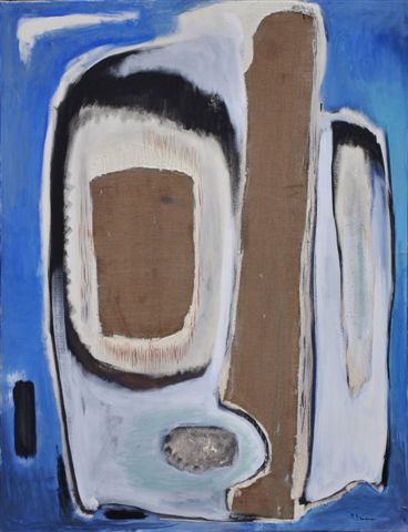 Huile et collage sur toile signée en bas à droite, datée au dos 05.02.70.