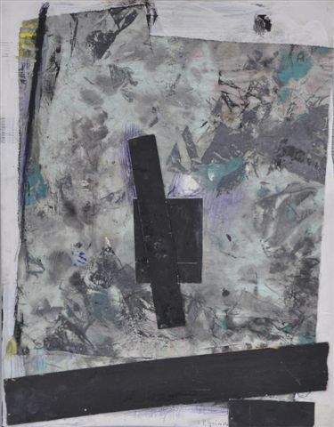 Technique mixte et tissus collés sur carton, signée en bas à droite.