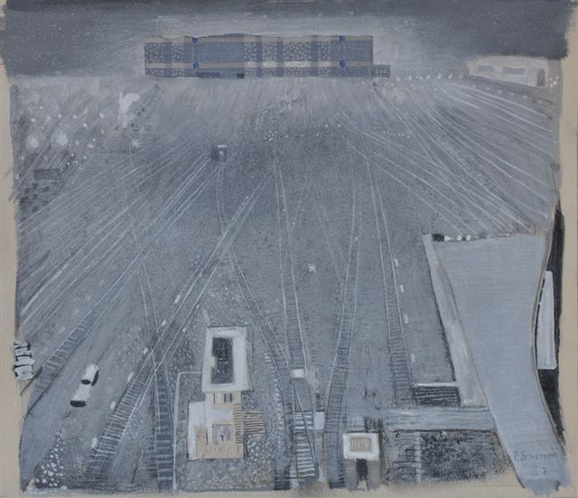 Gouache et collage sur papier, signée et datée 57 en bas à droite.