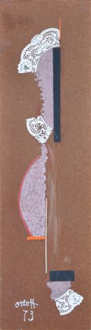Huile et collage sur isorel signée et datée 73 en bas à gauche.