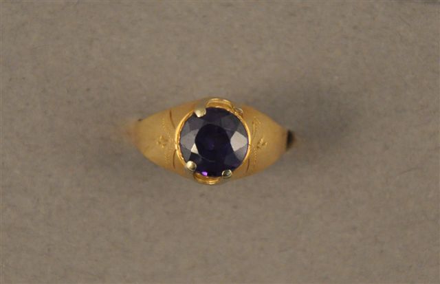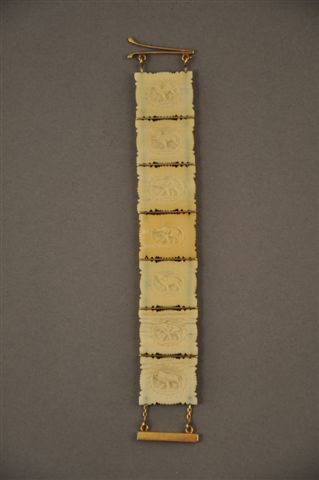 LOT comprenant : un BRACELET en composition gravé d'animaux, les intercalaires et le fermoir en or - trois BAGUES en or ornées de pierres de synthèse. Poids brut : 54 g.