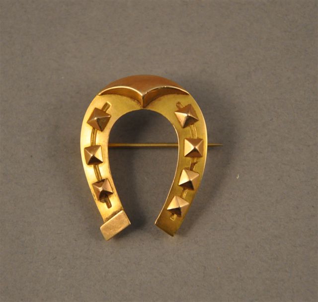 BROCHE en or jaune, figurant un fer à cheval. Poids : 5,9 g.