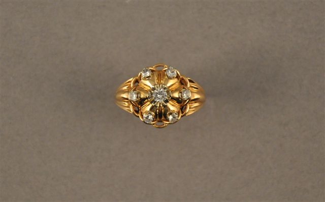 BAGUE rosace en or jaune ornée de sept pierres blanches. Poids brut : 5,2 g.