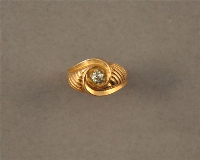 BAGUE en or jaune torsadé, ornée au centre d'un diamant de taille ancienne. Poids brut : 2 g.