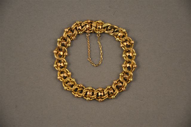 BRACELET en or rose et jaune à maillons doubles centrés de tête de clou facetté. Poids : 14,6 g. (petits chocs)