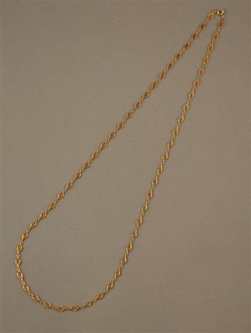 SAUTOIR en or, mailles entrelacs. Long. 90 cm. Poids : 33,4 g.