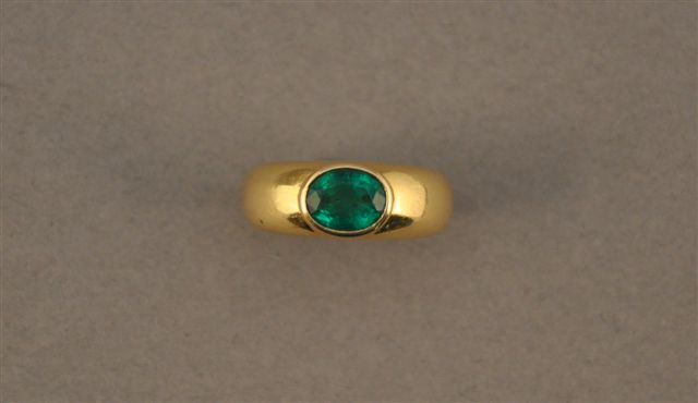 BAGUE jonc en or jaune, ornée d'une émeraude ovale sertie clos. Poids brut : 10 g.